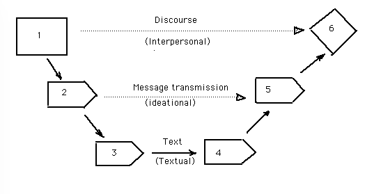 "whereas Halliday treats all his functions as being intrinsic to grammar, I interpret them differently" (P7). Ideational function: "language functioning as a means of conveying and interpreting experience of the world". Interpersonal: "as an expression of one's attitudes and an influence upon the attitudes and behaviour of the hearer." Textual: "Language functioning as a means of constructing a text, i.e. a spoken or written instantiation of language."