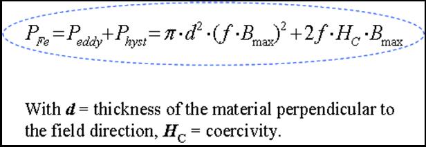 A general form for the magnetic + electrical losses (for a magnetic and conductive material such as Fe (iron) is: |