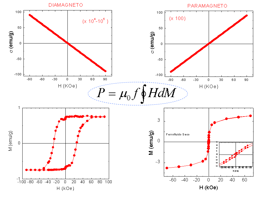 When the material is insulating (no free electrons to go around) AND magnetic the same ac magnetic field generates displacements in the domain walls of the material. This process of creating, displace or extinguish a magnetic domain requires some energy. The energy is gained or lost in an irreversible way, and is an intrinsic behavior of a magnetic material. This irreversibility yields to the M vs. H curves known as hysteresis cycle. |