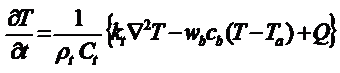 where t and kt are the thermal relaxation time and thermal conductivity, respectively. Applying the above model to real situations of living organisms requires the inclusion of the system’s response to local heating, mainly blood perfusion that acts as a efficient refrigerating system in highly vascularised tumors. This is done by using Pennes’ equation to estimate the temperature field T(x,y,z,t) at nearby tissues