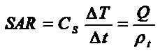 The heating capacity of a magnetic material or electromagnetic device is quantified through the specific absorption power rate (SAR), defined as the amount of energy converted into heat per time and mass . In terms of the usual experiments and parameters for magnetic colloids, the loss power per gram of Fe3O4 is obtained from the heating curves within the initial DT temperature rising interval through the definition
